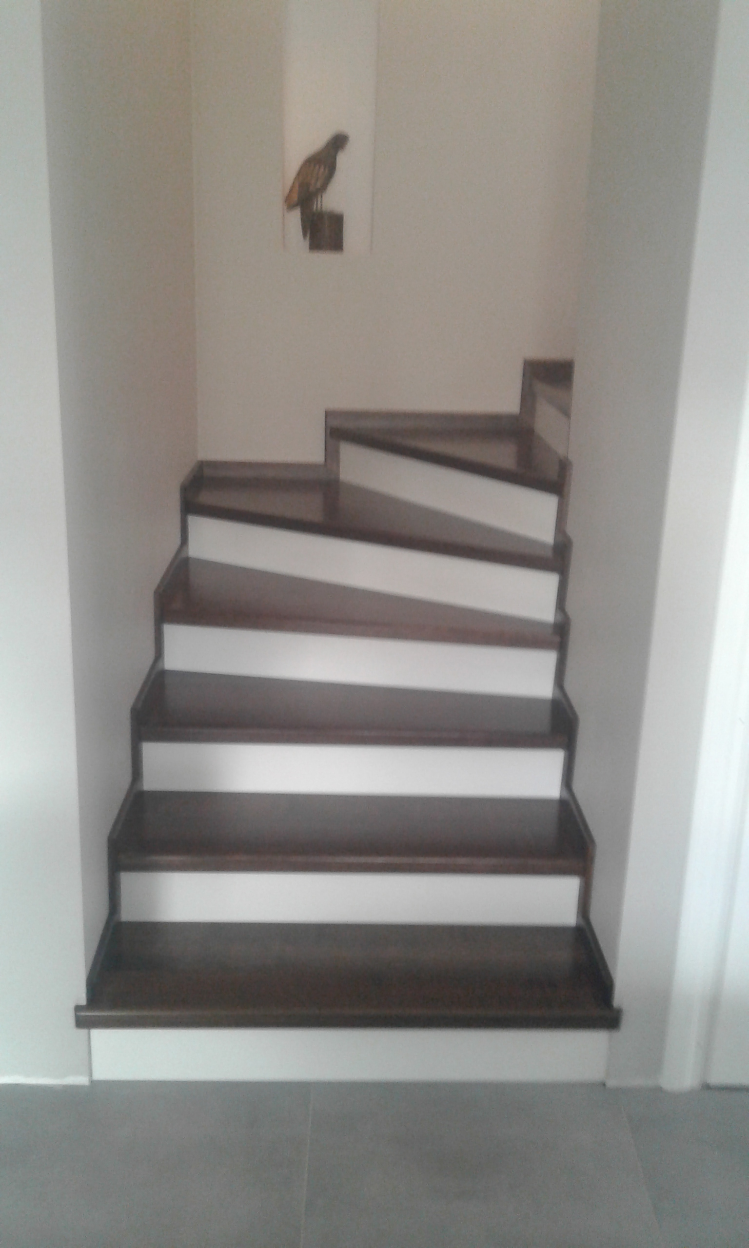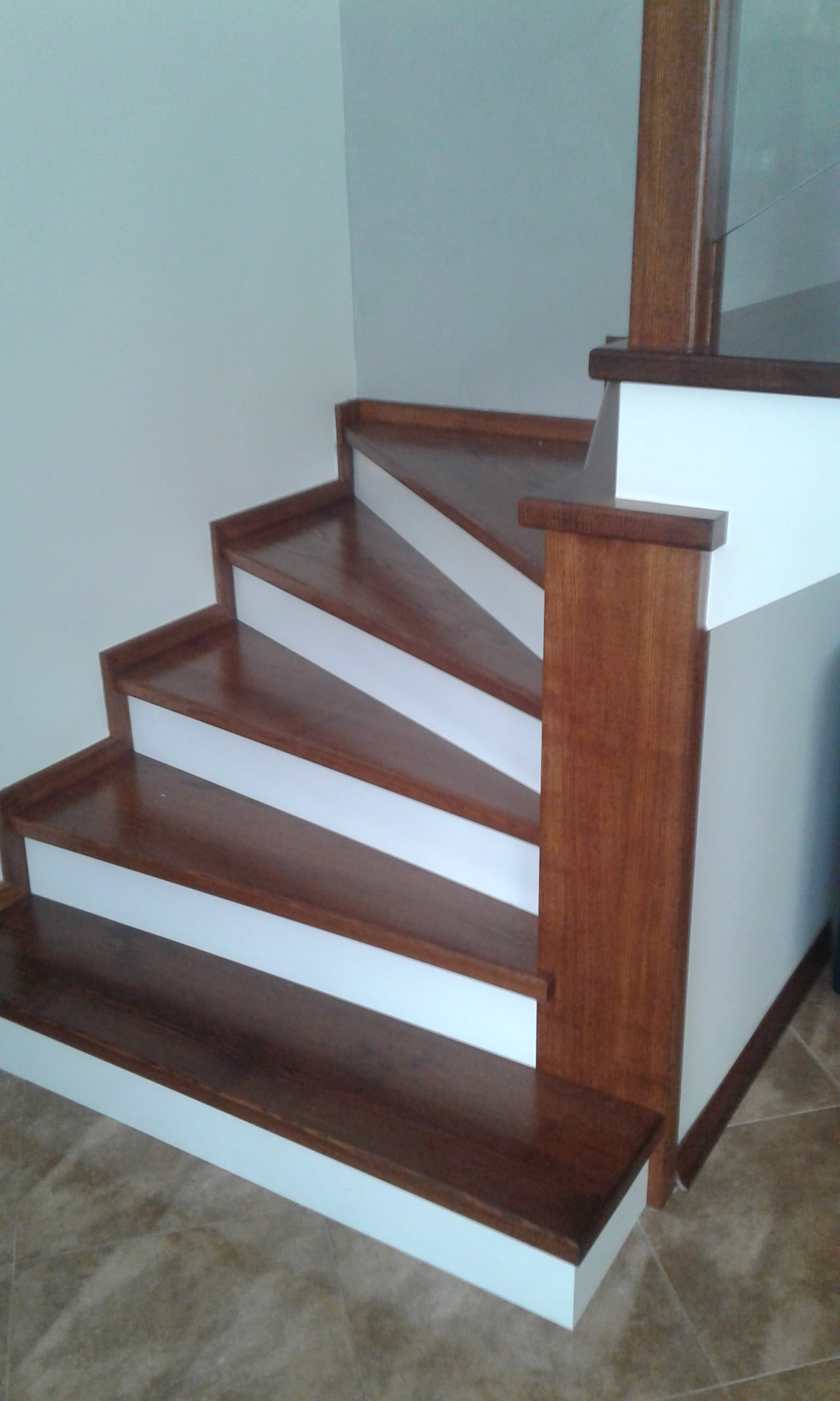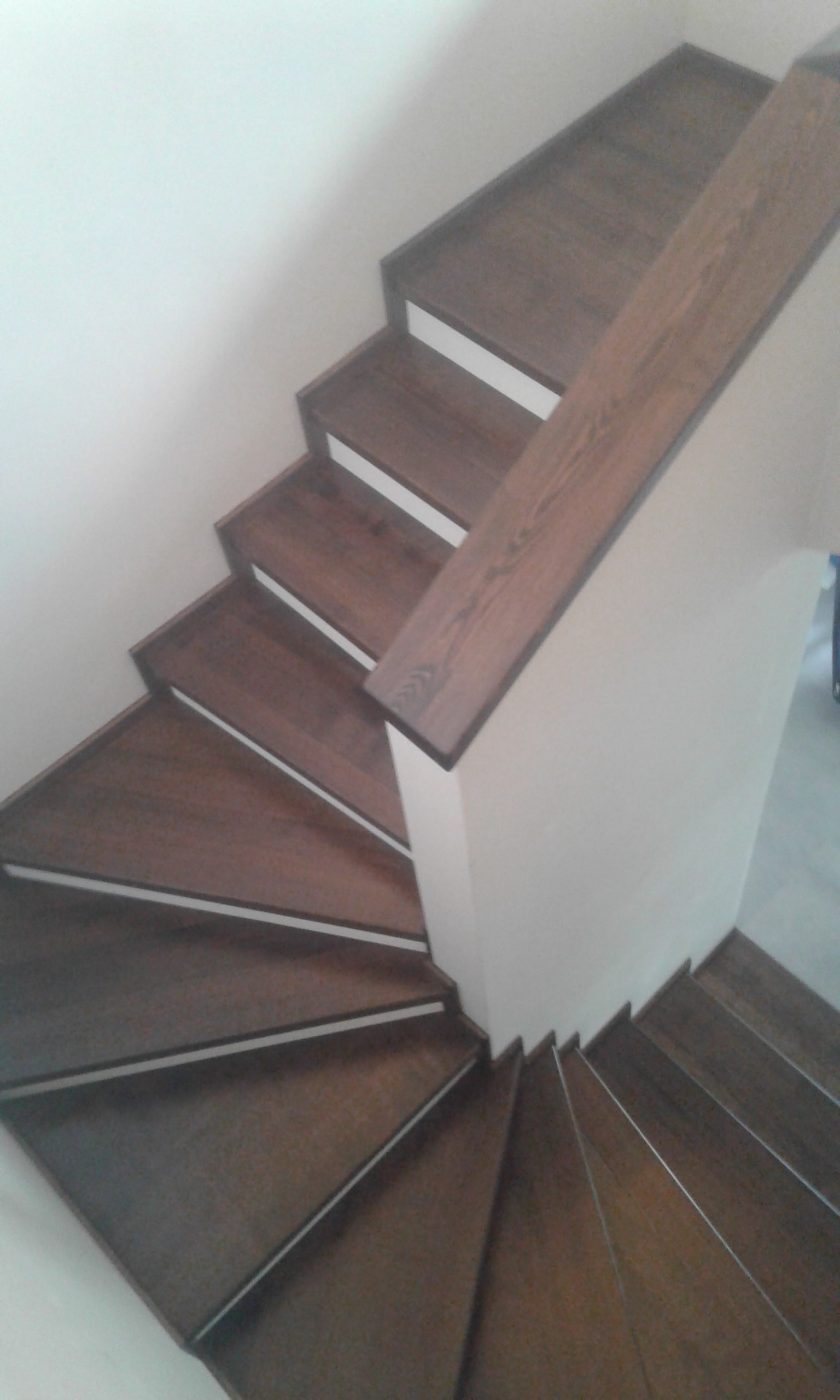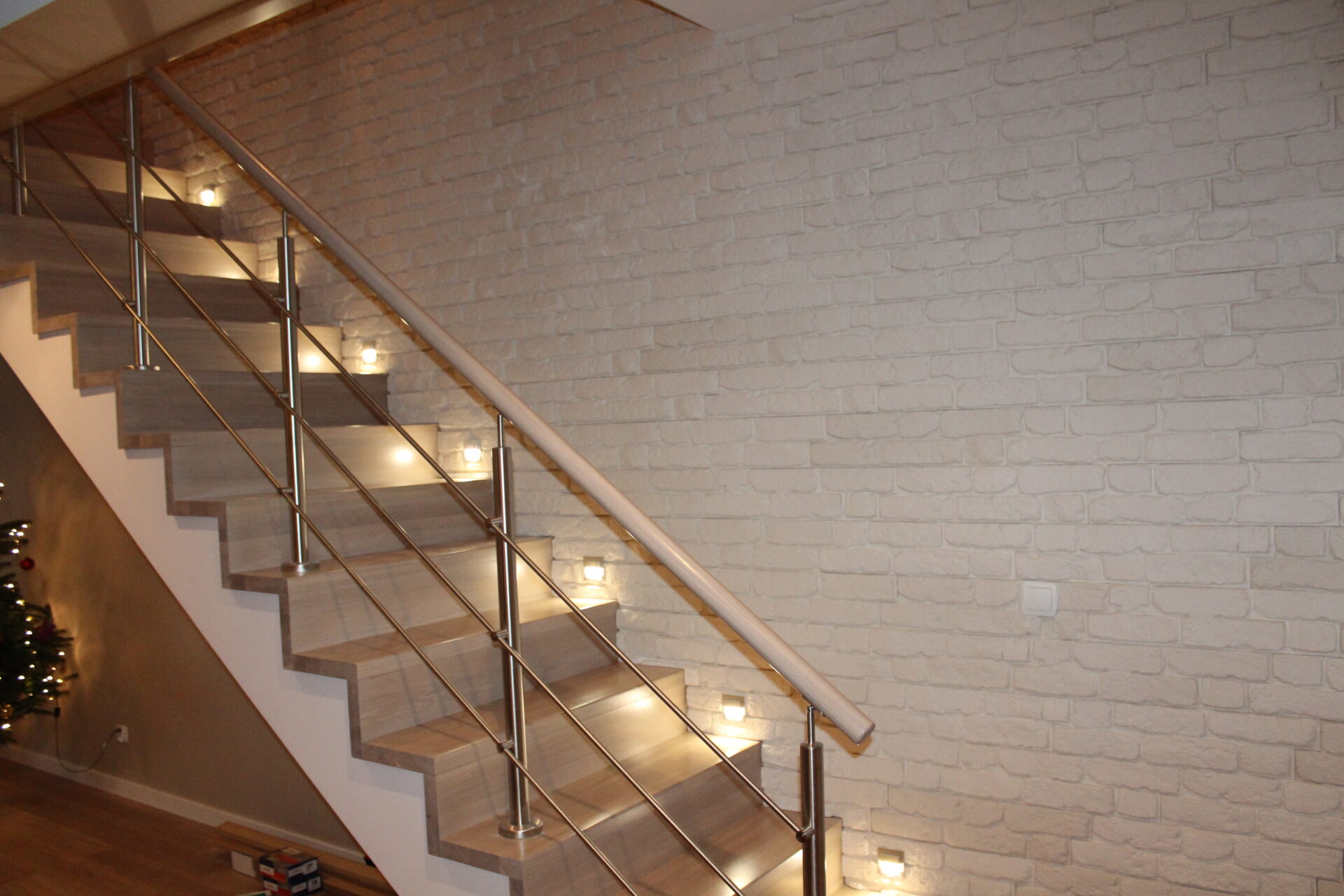 Stopnie i podstopnie z drewna dębowego barwione i lakierowane. Balustrada,słupki stal nierdzewna,trzy relingi nierdzewne,poręcz drewno okrągła fi 42